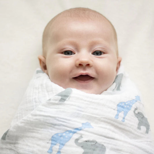スワドルデュオ キリンとゾウの楽しい水玉柄セット (ブルー)