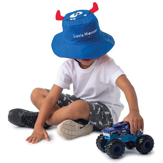 キッズUVサンハット|モンスター&くるま(リバーシブル)