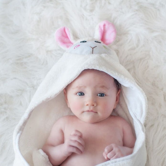 フード付きベビーバスタオル ひつじのローラ コットン 赤ちゃん お風呂 お風呂タイム バスタイム タオル