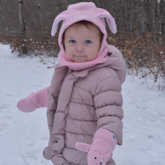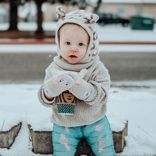 赤ちゃんの手をやさしく守る、ふんわりフリース裏地付きニットミトン。お出かけや雪遊びにぴったり。