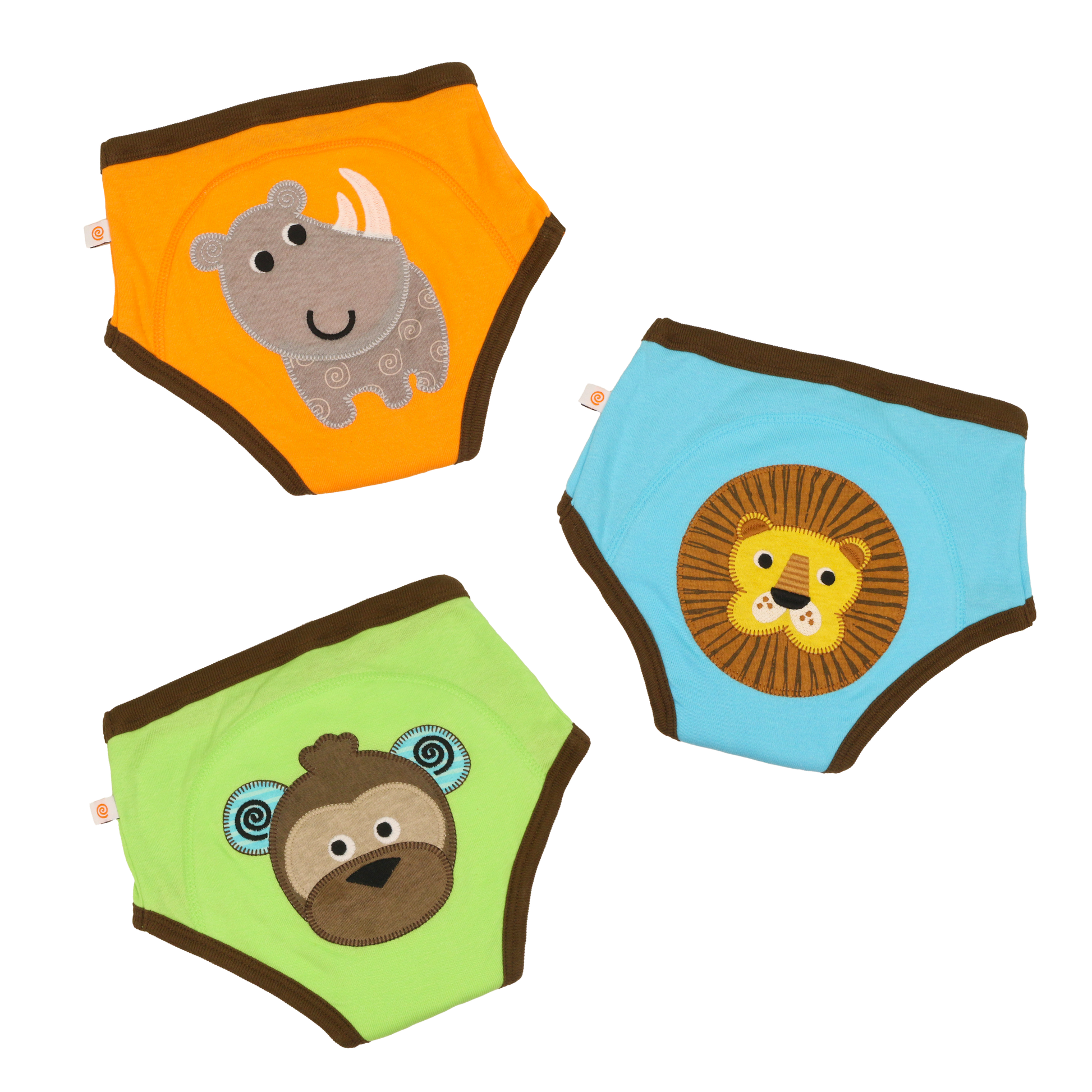 100% オーガニックコットン トイレトレーニングパンツ (3枚セット) サファリの仲間(サイ|ライオン|サル)90cm/100cm