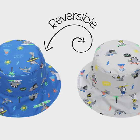 リバーシブル仕様のあごひも付きで、風の強い日でもしっかりフィットします。